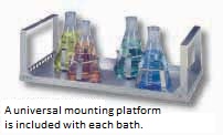 The bath may be used with or without oscillation. Shaking speed is variable from 20 to 200 oscillations per minute, and the stroke length can be adjusted to three separate settings: 0.5, 1.0, or 1.5 inches to minimize the chance of accidental spillage. Also, the unique basket support system is designed to eliminate tank wear, yet still provide full support and free action for a heavily loaded basket.